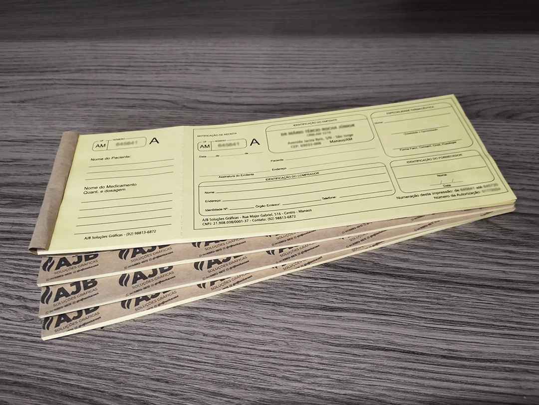 Autorização: A impressão deste receituário é realizada somente mediante a autorização da ANVISA, emitida pela vigilância sanitária local. O envio dessa autorização é essencial, pois nela constam a numeração inicial e final e a quantidade de blocos autorizados para o profissional ou instituição, assegurando a rastreabilidade e conformidade do documento.