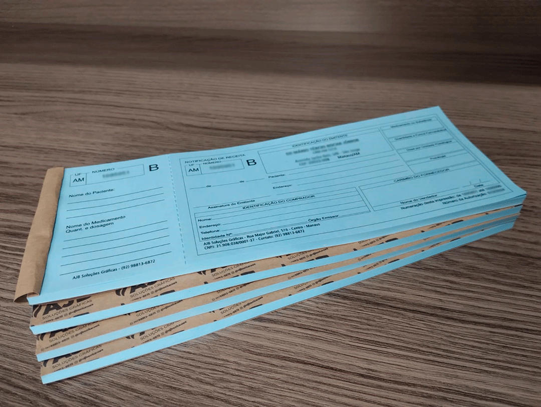 Autorização: A impressão deste receituário é realizada somente mediante a autorização da ANVISA, emitida pela vigilância sanitária local. O envio dessa autorização é essencial, pois nela constam a numeração inicial e final e a quantidade de blocos autorizados para o profissional ou instituição, assegurando a rastreabilidade e conformidade do documento.